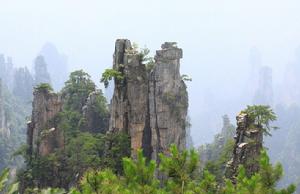 第二天:早餐後從住店出來(還是別忘了把你的寶特瓶灌滿水咯)到免費環保車停車場。坐去天子山的環保車到大觀台下,游一步難行、神雞啄食等等,再原路返回到公路上,繼續坐環保車去神堂灣,看完之返回沿公路