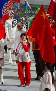 劉秋宏高舉五星紅旗入場
