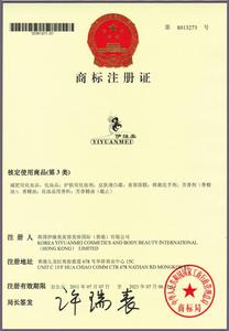 “伊緣美”商品商標(第3類)商標證號為:8013273)“伊緣美”服務商標(第44類)註冊證號為:9013615)