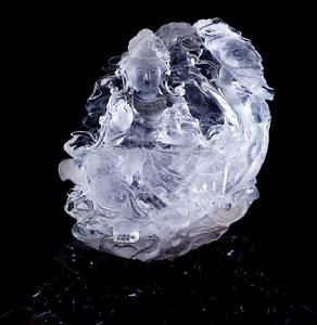 在水晶的世界裡,由於充滿太多神奇的大自然奧秘加上清澈透明,一目了然,把玩之常令人心曠神怡,豁然開朗,故有愈來愈多的人欣賞水晶收藏水晶,將水晶雕成大慈大悲觀世音頂禮膜拜,石頭記收藏之鎮館之寶“水晶觀音”,高180公分,重1.5噸,清澈通透度達百分之九十以上,堪稱單一晶體的稀世珍寶,由高級水晶工藝名師數名歷經三年辛苦雕琢,終成大器,世上僅此一件,今生與你結緣。