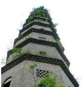 文峰塔周圍是紅色的土,土堆成山坡型,塔豎立在山坡正中間,雄偉壯觀,拔地凌空。
