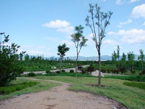 張山營鎮政府南側公園占地52畝,綠化工程移走大部分油松、刺槐等雜樹,在原有的基礎上清除1米土層內的大石塊,位於北京市延慶縣張山營鎮佛峪口村南。