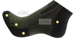 I)、選用的襪子襪跟要大,成袋形,儘可能接近人的腳型。襪後跟大小,會引起穿著後出現襪筒下垂,襪跟滑到襪底的現象。選購時不能試穿,只要把襪面與襪底從中心線對摺,一般襪面與襪跟比為2:3為宜。