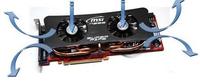 一般散熱裝置採用的是單風扇結構,風扇直吹顯示卡晶片周邊,以主要為晶片散熱,而並未太多考慮供電模組散熱。但實際上供電模組已經成為高端顯示卡的另外一個發熱大戶。所以,為供電模組散熱已經成為一個不容忽視的問題。所以,在這種情況下,微星提出了“整體散熱”的概念,即通過散熱系統對空氣流動路徑的引導,讓氣流充分流動至全卡各發熱單元,將各發熱單元的熱量帶走,以達到整卡散熱的效果。而Twin Forzr的設計正是基於這種理念!兩個風扇可以直吹到供電單元、晶片等主要發熱部件,以達到顯示卡整體散熱的效果。