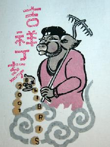 德力格爾作品·姑娘捧著潔白的哈達,獻上飄香的奶酒,歡迎遠方的客人,來到我們吉祥的草原,書票主人陳健----願讀盡中外美學之書,圖案以銀灰、淺肉色、淺黃色及黑色調為主,構成沉穩、雅致、歡快吉祥的書票,裝飾色彩並透著淡淡的書卷氣。