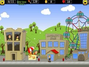 遊戲第一關使用滑鼠點擊home招募不同IQ的工人,點擊選擇工人移動到相應的建築上熱狗攤(生產食物可以用來招募工人)/左側破樓(防禦殭屍)/右側大廈(管理城鎮賺取金幣,金幣可用於擴招工人喔),準備完後點擊左上角的播放按鈕開始,關卡完成後還有更多關卡等待你的挑戰喔!
