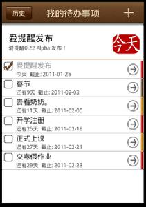 5、不同狀態的的事件有不同的標識,過期事件紅色顯眼提醒。
