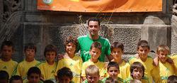 adidas代言人哈維與夏令營的孩子們合影 在足球運動如火如荼的今天,作為世界運動龍頭品牌的adidas也願意為未來足球事業貢獻自己一份力量。自1998年起,adidas便與旗下巨星代言人、足壇天王級中場哈維 埃爾南德斯聯袂打造青少夏季足球訓練營"Campus Xavi”。