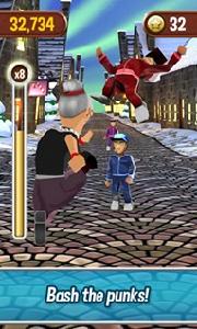 聖誕節就要來了,《憤怒的老奶奶快跑聖誕節版 Angry Gran Run》也帶著全新的聖誕節場景讓你在遊戲中充分感受到聖誕節的歡樂氛圍。你將會在一個天上極光閃耀,地上燈火通明的白雪世界中進行跑酷。遊戲通過搖動手機及觸屏來控制老奶奶向前狂奔、跳躍或者拐彎。中途還會有聖誕禮物堆、聖誕老人雪橇以及聖誕糖果棒等極具聖誕氣息的物品阻擋老奶奶前行,幸運的話還會遇到帶著聖誕帽的大恐龍喔~所以在這段歡樂的時光里就和老奶奶一起奔跑吧!