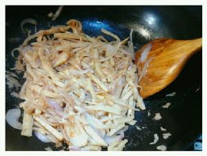 餅絲、洋蔥、黑胡椒牛肉調料、水、油、鹽做法