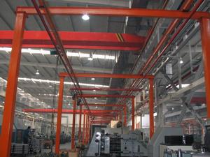 為了不影響操作,當一個工作區域不允許有任何支撐結構時,凱力起重生產的柔性輕型組合梁式懸掛起重機是一個完美的選擇。這套起重機系統需要一個能承受足夠強度、安全支撐起重機負載的屋頂結構。客戶可以在一套固定型軌上安裝多個主梁,大大地提升了生產效率。 此類產品為鋼質結構,起重量為75-2000kg,主梁總長度可以達到10m。相對於傳統的梁式起重機,封閉型軌的設計搬運所使用的力僅為其三分之一。桁架式鋼軌的設計使跨度更大,安裝布局有更多的靈活性。