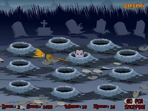 萬聖節的輕鬆好遊戲,打殭屍地鼠,玩法簡單,滑鼠點擊即可,但是想玩好就不容易啦,快來度試試你能打死多少個殭屍吧!