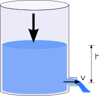 當液體因受到地心吸力的作用而流出時,其速率v滿足v^2=2gh,其中g為重力加速度,h為開口的中心和液體最高面的距離。這個速率剛好等於液體從離地h的地方自由下落,著地前的速率(假設沒有空氣阻力)。