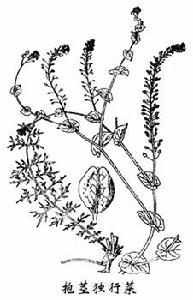 抱莖獨行菜,一年或二年生草本,高10-35厘米;莖單一,近直立,分枝,無毛。基生葉二回至三回羽狀半裂,長4-10厘米,裂片線形,有柔毛;葉柄長1-2厘米;莖中部和上部葉卵形或近圓形,長1.5-3厘米,急尖,基部深心形,抱莖,全緣,無毛。萼片寬橢圓形,長約1毫米;花瓣淺黃色,窄匙形,比萼片稍長;雄蕊6。短角果近圓形或寬卵形,長和寬3-4.5毫米,頂端稍凹入,無翅,花柱極短;果梗長4-6毫米。種子卵形,長1.5-2毫米,深棕色,頂端有窄翅,濕後成黏膜。花果期5-6月。