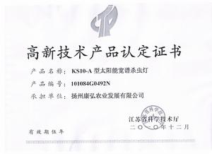 KS10系列節能寬譜殺蟲燈已獲得《農業機械推廣鑑定證書》