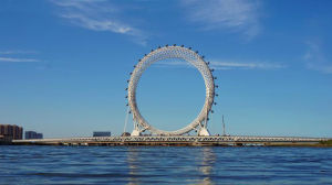 11、中國天津市,建在海河永樂橋上的天津之眼(總高120米,輪徑110米)