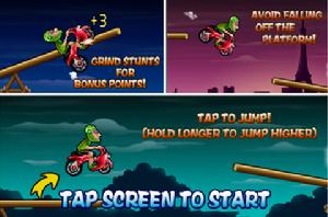 玩家需要化身摩托英雄執行特技,通過手指觸控螢幕進行跳躍與特技,獲得獎勵積分。