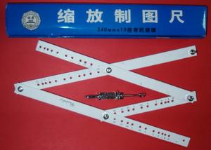 特徵是:由固定連線有支架的尺座板,均分布有一組放大倍數及連線孔且位置相互對應的單尺A、單尺B、單尺C和單尺D,螺栓、倍數調節螺栓、螺栓或螺釘、讀圖針、以及筆等組成;單尺A的一端通過螺栓與支架活動連線、另一端通過螺栓或螺釘與單尺C的一端活動連線,單尺B的一端通過螺栓(讀圖針與其下端固定連線或連為一體)與單尺D的一端活動連線、另一處通過倍數調節螺栓與單尺A活動連線,單尺C的另一端有孔並與筆套接,單尺D的另一處通過倍數調節螺栓與單尺C活動連線。採用本實用新型,放大的範圍寬廣,採用放大再放大的組合,可得到任意大小的畫面,放大的精度高,操作快捷、方便,實用性強。