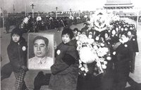 文化大革命天安門事件自3月下旬起,南京、杭州、鄭州、西安等城市的民眾衝破“四人幫”的阻力,自發舉行悼念活動。首都人民也匯集到天安門廣場悼念周恩來。4月4日清明節這一天,聚集了200多萬京內外民眾的天安門廣場,悼念活動達到高潮。人們在人民英雄紀念碑前,在共和國歷史上罕見的“花山詩海”中慷慨陳詞,深切懷念周恩來,怒斥“四人幫”迫害周恩來、陰謀篡黨奪權的滔天罪行,出現了一人振臂,萬人應和,震天動地的感人場面。當時在廣場上爭相傳抄、凝聚著愛和恨的那些詩詞、傳單,莊嚴地表達了人民民眾要求把中國建成現代化強國的心聲。當晚在中央政治局會議上(葉劍英、李先念未參加),天安門廣場的事態被定為反革命事件。4月5日,聚集在天安門廣場的數萬民眾同一部分民兵、警察和部隊戰士發生了嚴重衝突。一場悼念周恩來、反對“四人幫”、支持鄧小平所代表的黨的正確領導的強大抗議運動,就這樣被壓了下去。儘管如此,這場全國性的運動,為後來粉碎江青反革命集團奠定了偉大的民眾基礎。