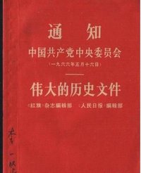 五一六通知1966年5月16日召開的中共中央政治局擴大會議通過了康生、陳伯達起草、毛澤東修改的《中國共產黨中央委員會通知》(即《五一六通知》)。通知指出“混進黨里、政府里、軍隊里和各種文化界的資產階級代表人物是一批反革命的修正主義分子一旦時機成熟他們就會要奪取政權由無產階級專政變為資產階級專政。“例如赫魯雪夫那樣的人物他們現正睡在我們的身旁,各級黨委必須充分注意這一點。”“高舉無產階級文化革命的大旗徹底揭露那批反黨反社會主義的所謂‘學術權威’的資產階級反動立場徹底批判學術界、教育界、新聞界、文藝界、出版界的的資產階級反動思想奪取在這些文化領域中的領導權”。《五一六通知》的發布標誌著文化大革命的正式開始。會議還決定成立新的“中央文化革命小組”取代原先由彭真、陸定一領導的“文化革命五人小組”原五人小組上報並得到劉少奇、鄧小平、周恩來等批准的《二月提綱》也被廢除。“五一六通知”發布和“二月提綱”被撤銷往往被視為文革正式開始的標誌。不過五一六通知直到1967年5月17日才由《人民日報》公開發表在此之前是作為黨內二級機密檔案只有達到17級以上的黨員幹部才能接觸。