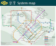 5條捷運路線包括:南北線(紅線)從濱海南碼頭通往裕廊東,東西線(綠線)從巴西立前往西部的裕群,而支線:丹拿美拉經過博覽站與樟宜機場之間。東北線(紫線)連線港灣至東北部的榜鵝,環線(橘黃線)從港灣通往多美歌和濱海灣,濱海市區線(藍線)。在每個捷運車站裡都有標示明顯的線路圖和使用說明,還有功能強大的自動售票機,公眾只有要查看站名記住其顏色及號碼即可使用。