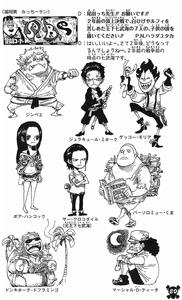 在《海賊王》單行本第63卷的SBS(讀者和尾田互動專區)中,尾田應讀者要求畫出了王下七武海少年時代的樣子。從左上到右下依次為——甚平、米霍克、莫利亞、漢庫克、克洛克達爾、熊、多弗拉明戈、帝奇。