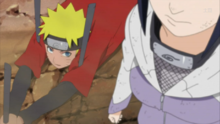 雛田和井野出現使針對鳴人的攻擊偏移。雛田道“鳴人君,你沒事吧”,除此之外,在隨後趕來的牙說“在雛田面前不用刻意逞強,鳴人”
