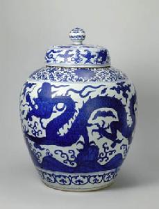 此罐造型渾厚,構圖繁密嚴謹,層次分明,主題突出。據文獻記載,此時期的青花瓷使用進口的“回青”料描繪,色調翠藍濃艷,微泛紫紅,具有鮮明的時代特徵。