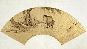 【名稱】明張龍章畫飲馬圖扇