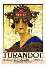 圖蘭朵海報普契尼的最後一部歌劇是《圖蘭朵》又回到了他以往的形式,具有涉及陰謀、背叛、嫉妒和自殺內容的複雜情節,採用通常的材料。這部歌劇還刻畫了三個小人物平、龐和彭。普契尼的早期歌劇一直以加利福尼亞和日本這種遙遠的地方為背景,《圖蘭朵》是以皇帝統治的中國為背景。這部作品配樂優美,故事情節跌宕起伏,舞台表演講究,富有禮儀,有著更複雜的象徵和謎語。當然,主宰整個歌劇的永遠是活躍的戲劇性誇張、戲劇性變化和戲劇性形式。