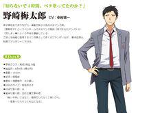 月刊少女野崎君[椿泉所創作的四格漫畫] | 野崎梅太郎(Nozaki Umetarou) 聲優:中村悠一/安元洋貴 本作男主角,人氣少女漫畫家。 高中二年級,身高190cm。 生日:6月6日(梅之日) 星座:雙子座 興趣是漫畫創作及尋找素材,手很巧,很擅長料理。喜歡的類型是有毅力的女孩。平常是個面無表情的高中男生,另一方面則是筆名夢野咲子的知名少女漫畫家,並沒有在學校里特意隱瞞自己是漫畫家的事情,但大家都不相信。一個人住在學校附近、作為工作室的公寓裡。雖然纖細的角色心理描寫廣受肯定,而且擅長的事是幫其他人解決戀愛煩惱(自稱),但卻沒有談過戀愛,也不會察言觀色。對漫畫以外的事情都不感興趣,在戀愛方面極為遲鈍。自從看到佐倉畫的海報後,就決定總有一天要找她當助手。國中時擔任籃球社主將。於《月刊少女羅曼史》連載作品《來戀愛吧》。 |