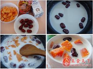 木瓜、牛奶、紅棗、米酒。做法