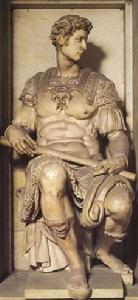 戲稱“小衛”,因為他前額上面的頭髮與《大衛》的頭髮很相似,又都是米格朗啟羅的雕塑作品。雕塑為一個羅馬式古代武將,身披甲冑,手握權杖,頭向左側,神色憂鬱的大理石坐像。他的名字為朱利阿諾·美第奇,這一形象的塑造是由當地,當時的歷史政治環境所決定的。佛羅倫斯成為義大利文藝復興的搖藍和中心,是與美第奇家族世代愛好文藝有關。憑藉他家族的豪富,收集有古希臘,古羅馬的古典藝術雕塑,繪畫,圖書,工藝美術。設有文物室,圖書館。