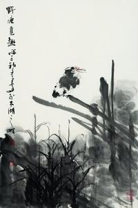 識得陀陀居主人朱墨春已有多年,常見其捧一把茶壺,閒居書齋,看書、寫字、畫畫。在別人象工匠那樣,一月或數月千筆萬筆製作大幅畫作時,他卻巋然不動,自顧醉心於三筆兩筆的水墨小品,自娛自樂。在別人大談構成意象,大搞水墨實驗時,他卻靜靜地躲進畫室,照樣閒閒地坐享傳統經典的滋養,在與前輩大師超越時空的對話中開悟心胸。