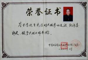一九九八年被中國永年國際太極拳聯誼會組委會授予“太極拳大師”稱號。