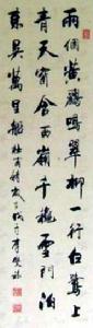 其自幼酷愛書畫,拜婁石白的高徒劉存惠、萇玉奎為師,以得親傳親授,汲取歐陽詢的楷書、王羲之蘭亭序、顏真卿的行書和潘齡皋等歷代名家書法之營養。