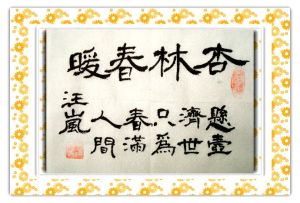 - 釋義:杏林春意盎然,讚揚醫術高明