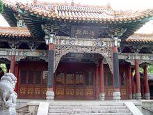 酒祖殿位於祠院後部,為全祠的主體建築,磚木結構,歇山重檐,二十根大柱構成四面迴廊,抱廈額枋上的那塊鐫有“酒祖殿”三個黑底金字是中國末代皇帝之胞弟,當代著名書法家愛新覺羅·溥傑八十四高齡所書。