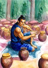 杜康想起老翁講的“二十一天”、“酉時”,他突然拽住黑塔在地上用手指寫了起來:“二十一日酉時,這加起來就是個‘醋’字呀,興許這瓊漿就是‘醋’吧!”杜康父子按照老翁指點的方法釀出了香醋。這醋在鎮江城內賣開了,又傳出鎮江城,名揚四方。
