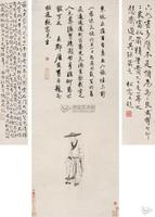 鈐印:唐寅私印、南京解元、六如居士 款識:東坡在儋耳,自喜無人識。往來野人家,談笑便終日。一日忽遇雨,戴笠仍著屐。逶迤還到家,妻兒笑滿室。歆哉古之人,光霽滿胸臆。圖形寄瞻仰,萬世誰可及。吳郡唐寅畫並題,為秋逸親家先生。 鑑藏印:寶宋樓珍藏、鐵涯過眼、馬二良真賞、陳景陶印、漁春審定、愨齋清娛 褚德彝題簽 褚德彝邊跋二段。