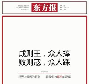 近日(2012-04-11)微博上正在流傳的如下《東方報》頭版照片,系網友杜撰,與本報並無關係。