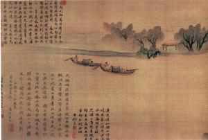 《柳溪漁樂圖》取景簡潔,但突出主題;用筆工整嚴謹,簡練準確。全幅充滿生活氣息。