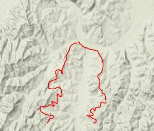 下位流域地形圖.地形為南高北低,河流兩岸為丘陵,中間為河谷,分布大小30多個村落.