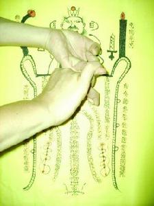 這是符咒法師用符咒術奉請趙三仙姑之碧宵仙姑之專有法術,將凡剪祭練為仙姑專用之法寶,即上界金交剪,使剪刀神剪斷兩人情緣滅離及一切阻礙,另大仙姑雲宵仙姑持溷元金斗可收攝其魂魄改變思想觀,二仙姑瓊宵仙姑持溷元金鏡可照返回光明路,去惡從善,三位仙姑皆是主司感情法術之神,威靈力奇大。