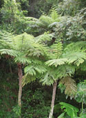 這個美麗的傳說表達了人們對民族英雄文天祥的崇敬之意。實際上桫欏是怎樣的植物呢?桫欏別名“刺桫欏”、“樹蕨”,屬蕨類植物門桫欏科,為恐龍時期遺留下來的珍稀瀕危植物,有“活化石”之稱。莖柱狀,直立,高3—8米。葉柄棕色或上面較淡,連同葉軸和羽軸具刺狀突起,葉片大,長距圓形,三回羽狀深裂。葉背面側脈分叉處著生有球形孢子囊群,孢子囊群產生孢子,依靠孢子傳播繁殖。喜酸生土壤,常生長在山溝的潮濕坡地和溪邊陽光充足的地方,常數十株或成百株構成優勢群落。孢子體生長緩慢,生殖周期較長。桫欏植物是一個較古老的類群,中生代曾在地球上廣泛分布,現已列為國家重點二級保護植物;具有極高的保護、科研和藥用價值。長潭自然保護區雞公山內現有植被原生保護完好的桫欏群落,數量達800多株,其中大植株樹齡400多年,樹高達4米,冠幅近20平方米。雞公山桫欏群落現已得到有關部門的重點保護,並已成為長潭自然保護區生態旅遊的一處新景點,人們在觀賞桫欏、感受大自然優美環境的同時,亦可以增長見識,陶冶情趣。
