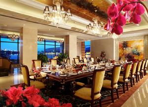 酒店豪華餐飲包廂18間、擁有豪華典雅的設施和環境。酒店特聘各地名廚,精心主理高檔燕鮑翅、經典粵菜、時尚抗邦菜、淮揚菜及地道地方菜餚,款款美味,道道珍饈; 餐飲包廂位於迎賓樓二樓及貴賓樓一樓,殷勤親切周到的服務,是宴請、聚會和商務活動的至尊場所。