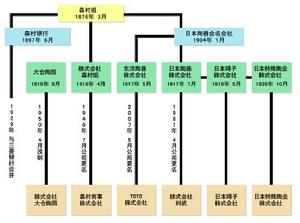 同年5月成立了大倉陶園(現在的(株)大倉陶園),於1924年2月成立了伊奈制陶(株)(現在(株)INAX。2001年10月與通世泰統合),之後於1936年9月成立了日東石膏(株)(1985年6月被(株)則武合併),又於1936年10月成立了日本特殊陶業(株)(從日本礙子(株)分立獨立)以及共立股份(株)(現在的共立股份(株),公司名稱中“原料”的日語從“漢字”變更為“片假名”),從而形成了現在的森村集團的基礎。