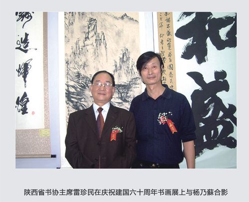 在慶祝建國六十周年之際,中國著名書法家,陝西省書協主席雷珍民先生與楊乃蘇合影留念。