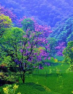 景區內植被茂密,覆蓋率較高。方圓十公里域內植物種類達590種,野生花卉達68種,樹類以櫟樹、青檀、山楂、黃櫨居多,在茂密植被間有杜仲、二花、連翹、柴胡、羊角葉、何首烏等幾十種中草藥。金秋季節,葉黃果紅,滿眼豐收景色,初霜過後,黃櫨葉紅,呈現“滿山霜葉紅勝火”的壯麗景觀。