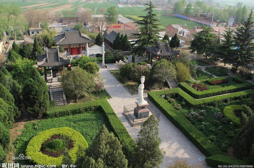 貴妃故居,中間矗立這貴妃像楊貴妃故居位於山西省永濟市首陽鄉獨頭村東向100米處。占地面積近百畝,建築形制為仿唐民居。楊貴妃故里,是一座類似城堡式的獨宅三進院落,它依山勢而建,南北走向,可瞰黃河。建築分堡門、下院、中院、上院、西花園、貴妃池,自下而上,建在一條中軸線上。